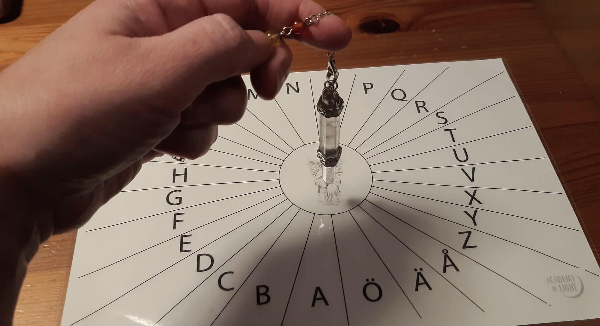 Med hjälp av pendeln kanaliserar jag budskap och/eller svar på dina frågeställningar. Jag tar emot detta ordagrant från guider i universum eller ibland anhöriga på andra sidan. Här får du ofta en syn på saken ur ett högre perspektiv . Detta gör jag på distans och skickar till dig via mail eller messenger. I dessa budskap är ofta språket lite gammaldags och högtravande vilket ger en fingervisning om att det kommer från högre dimensioner.